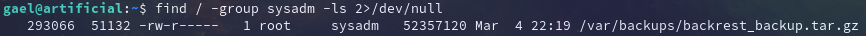 El usuario gael tiene asignado el grupo sysadm, buscando objetos asociados a ese grupo encontramos: